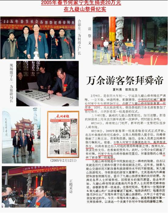 2005年春節何家寧先生捐資20萬元在九嶷山祭舜紀實