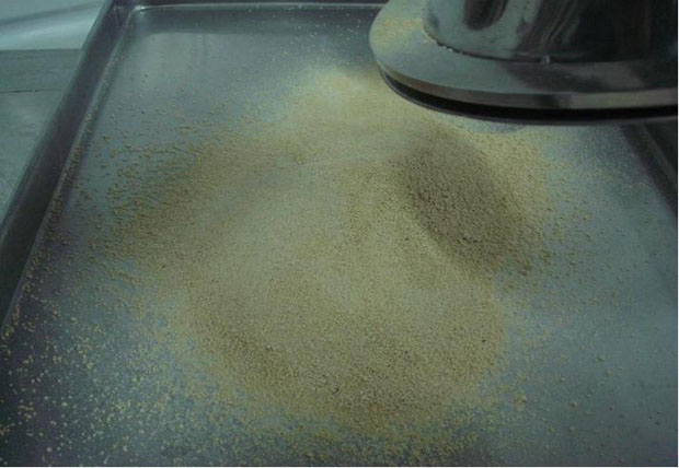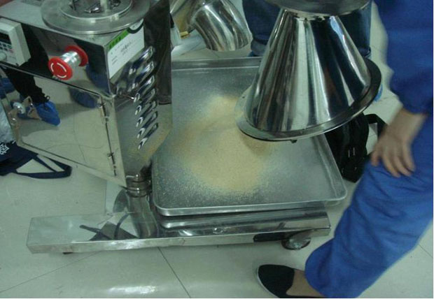 為什么要用快速整粒機整粒?因為物料經顆粒機制粒后,還需烘干,但烘干的顆粒會結成塊狀,因此需要再次整粒。有的藥廠為省錢,仍用顆粒機整粒,但整粒后多伴有粉末,且顆粒易破碎,顆粒質量不好。這是什么原因呢?這是由顆粒機整粒原理決定的: 顆粒機工作時,七角滾筒邊緣旋轉擠壓物料,使物料顆粒從篩孔中穿出,有一部分則因擠壓而變成粉末。