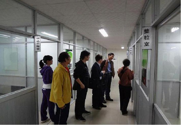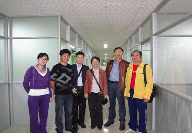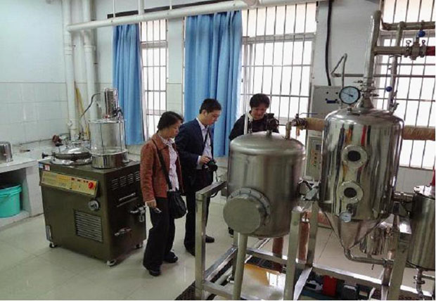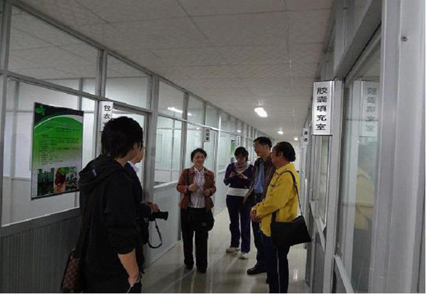 湖南中醫藥大學開設了生物工程等制藥專業。2009年,該專業技術負責人楊崧教授(男,帶眼鏡者),在考察了全國多家制藥機械廠家后,從我廠購進了一批實驗室制藥設備,組建模擬藥廠。該院模擬藥廠因設計合理,管理規范,許多大專院校模擬藥廠、制藥實驗室負責人絡繹不絕到該院參觀取經。圖為2011年9月我廠董事長、總經理陪同湖南科技學院張敏主任(女,帶眼鏡者)一起參觀湖南中醫藥大學模擬藥廠實況。