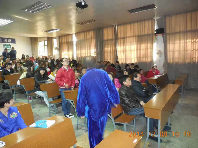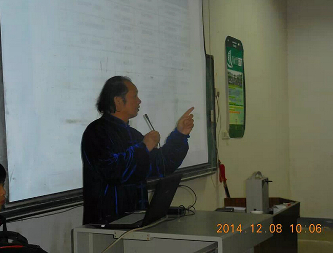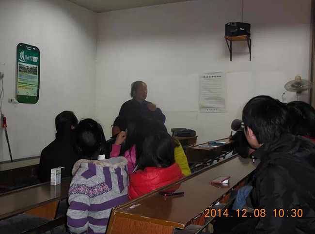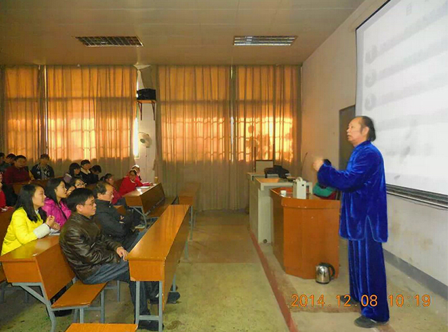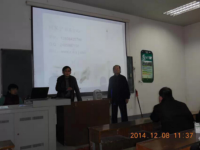 2014年12月8日,應周金彩院長(董事長何家寧先生的學生)邀請,董事長何家寧先生連續第3年在湖南科技職院藥學院講學.王院長,小王老師,2014年藥學專業應屆畢業班學生參加聽講.