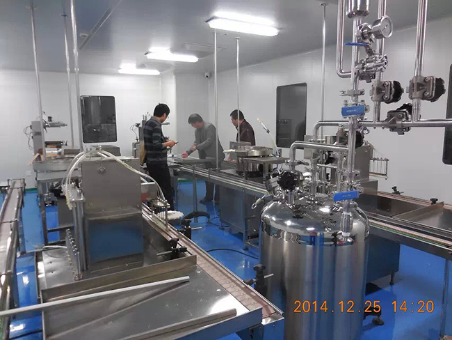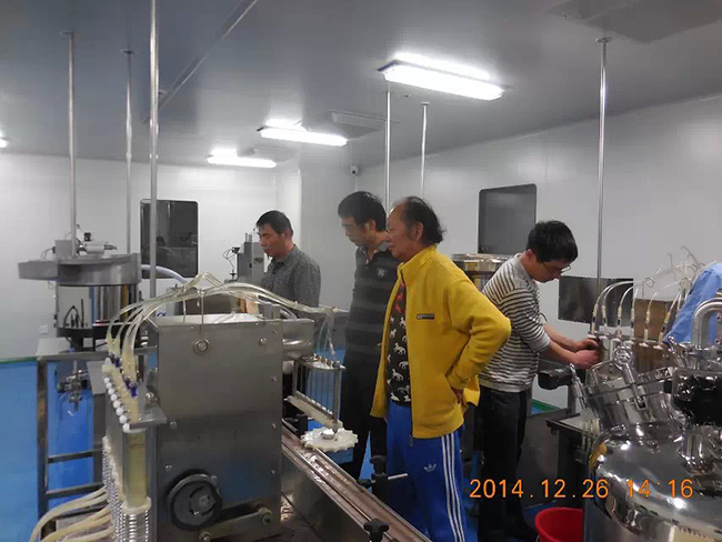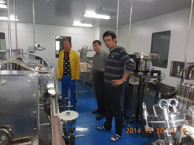 2014年12月26日,時逢毛澤東誕辰,海南皇隆制葯股份有限公司,現場試機驗收我廠生產的2條甲硝噻灌裝壓蓋生產線.受到公司董事長陳益智先生,常務副總何晶先生,設備部陳風崗先生熱情接待. 該生產線為直線式消泡灌裝壓蓋,為國內研發制造. 祝海南皇隆制葯股份有限公司生意興隆!