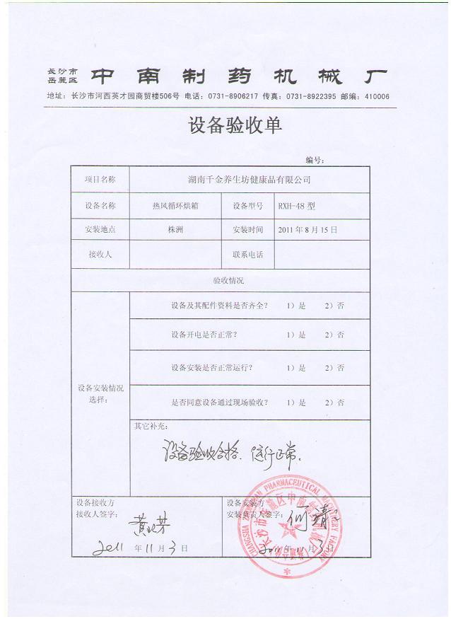 RXH-48盤熱循環烘箱在千金藥業驗收