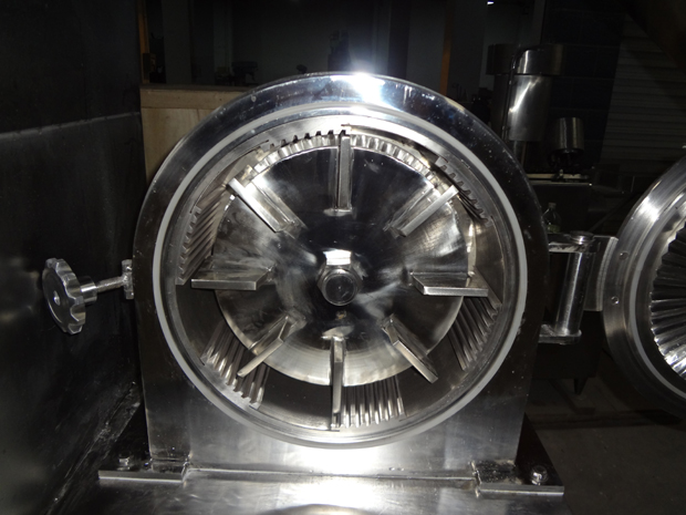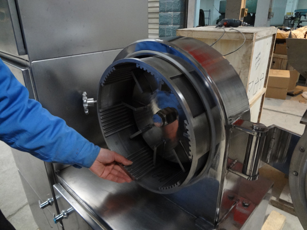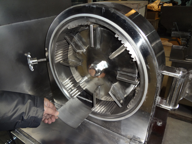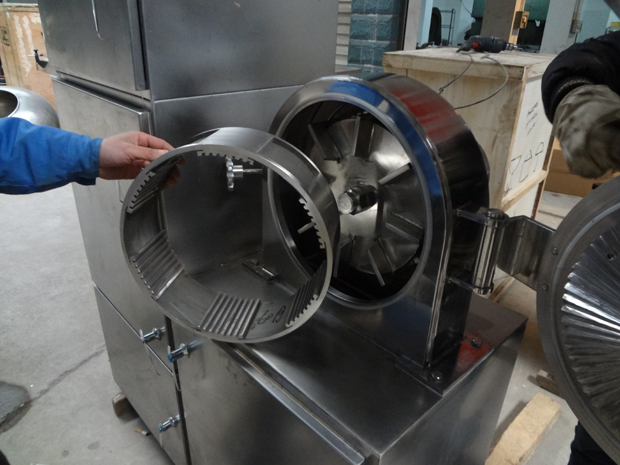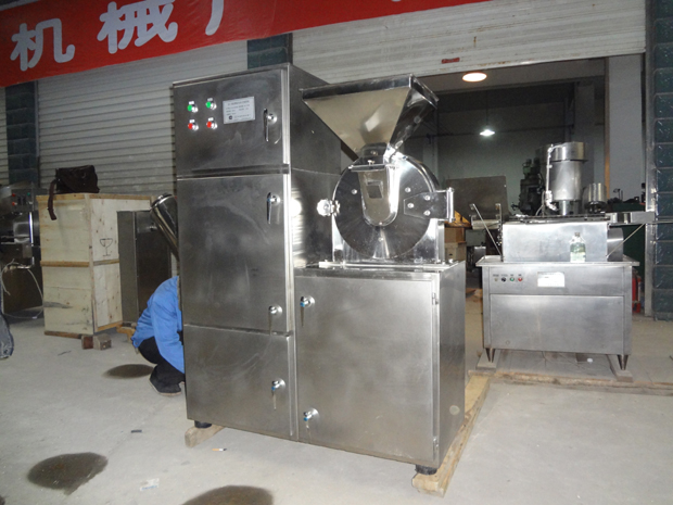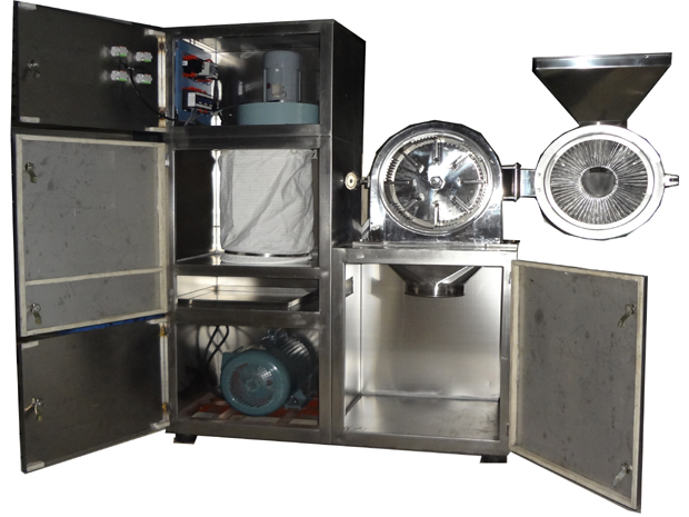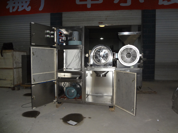 本機是在GF-30B基礎上改進的強力型粉碎機組。主要改變有:電機功率從5.5kw變為7.5kw,粉碎產量更大;粉碎倉增大;齒圈能自由抽出,便于清潔;雙層密封圈由密封條改為優質硅橡膠圈,密封效果更好,更耐用;電機啟動時采用星三角接法,附有其他延時啟動元件,開機平穩,解決了開機時沖擊響聲大的缺點。本機結構采用渦輪式,工作時具有自冷作用,解決了通常粉碎機工作時的發熱難題,粉碎效率高,物料的粉碎細度可達60-120目,除能粉碎常用物料外,尤其適用于熱敏性物料的粉碎。主要用于化工、醫藥、染料、農藥、食品砂糖、食鹽、植物纖維(中草藥、甘草、海參、大黃等)保溫材料、碳黑、活性炭、科研等行業。