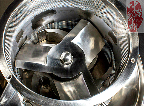 本機采用行星減速機構,通過電機變頻,實現無級變速,各種物料均能適應。篩筒和制粒刀各自旋轉并相對運動。通過篩筒與制粒刀的旋搓作用,將物料擠出篩筒網孔。成圓柱條狀物料,經篩筒外的切割切割下,成為大小均勻,長度一致的顆粒,(顆粒的大小由篩筒網孔直徑大小決定,長度由切割刀的把數決定)而且所制的顆粒不易松散.