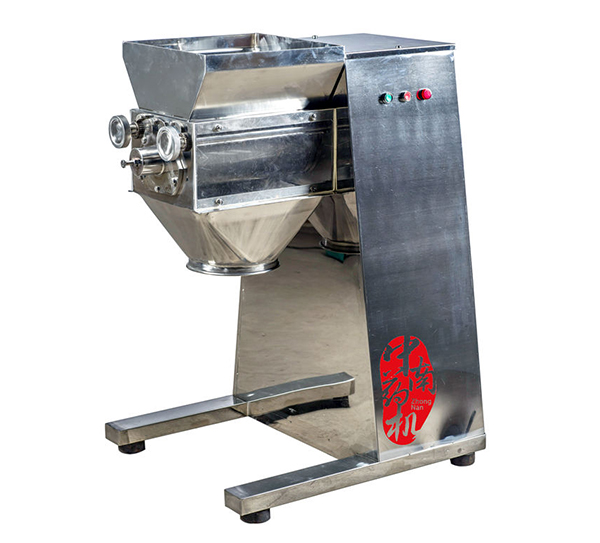 本機的最大特點之一是:制粒均勻。這是由于制粒的關健部件——五角滾筒設計、材料選擇、加工工藝好,五角滾筒上的空心三角筋,是從異形不銹鋼管廠特別定制的。制粒時,五角滾筒作搖擺往復運動,我廠采用了光學定位工模,確保五根三角筋與兩端轉軸的同心度一致,因而制出的顆粒均勻。